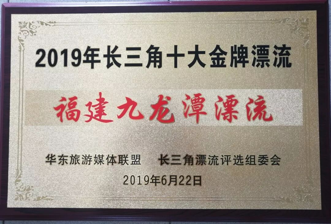 2019年6月,通过华东旅游媒体联盟和浙报传媒《江南游报》社,浙江省漂流联盟等网络和专家两层评选的300多个来自长三角地区的漂流精英中,九龙潭荣获长三角水质最好,环境最美,生态最佳的长三角十大金牌漂流奖。相关链接:喜讯~九龙潭景区荣获华东十大金牌漂流奖!